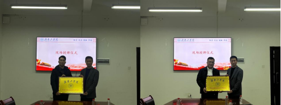 在与会人员的见证下,学校与两家企业签订了实践教学基地协议和就业基地协议,并现场举行授牌仪式。