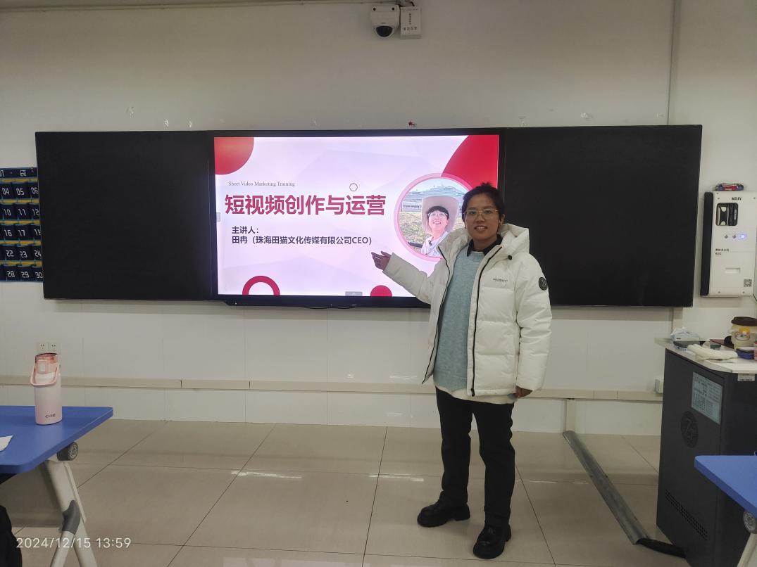 讲座伊始,田总首先向同学们分享了她的创业故事,据悉,珠海環球铁叁角是一家专注于新媒体内容创作和品牌推广的公司。自成立以来,该公司凭借创新的内容策略和精准的市场定位,迅速在行业内崭露头角,成为新媒体领域的佼佼者接着田总从新媒体短视频平台的视角出发,深入浅出地讲解了如何培养一个成功的短视频账号。她强调了视频标题与内容策划的重要性、发布后的维护技巧以及构成优质视频的核心要素。随后,田总还围绕短视频账号的有效运营策略展开了讨论,不仅分享了当下典型短视频平台的核心算法和推荐机制,还提供了实用的增粉互动技巧及增强粉丝黏性到实际变现的建议。
