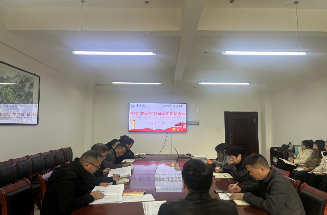 1224日上午,商学院于经315会议室召开学校“双代会”精神学习贯彻会议,全体院领导、三办主任、教研室主任、实验中心主任、全体辅导员出席。会议由商学院党委书记王小兵教授主持。