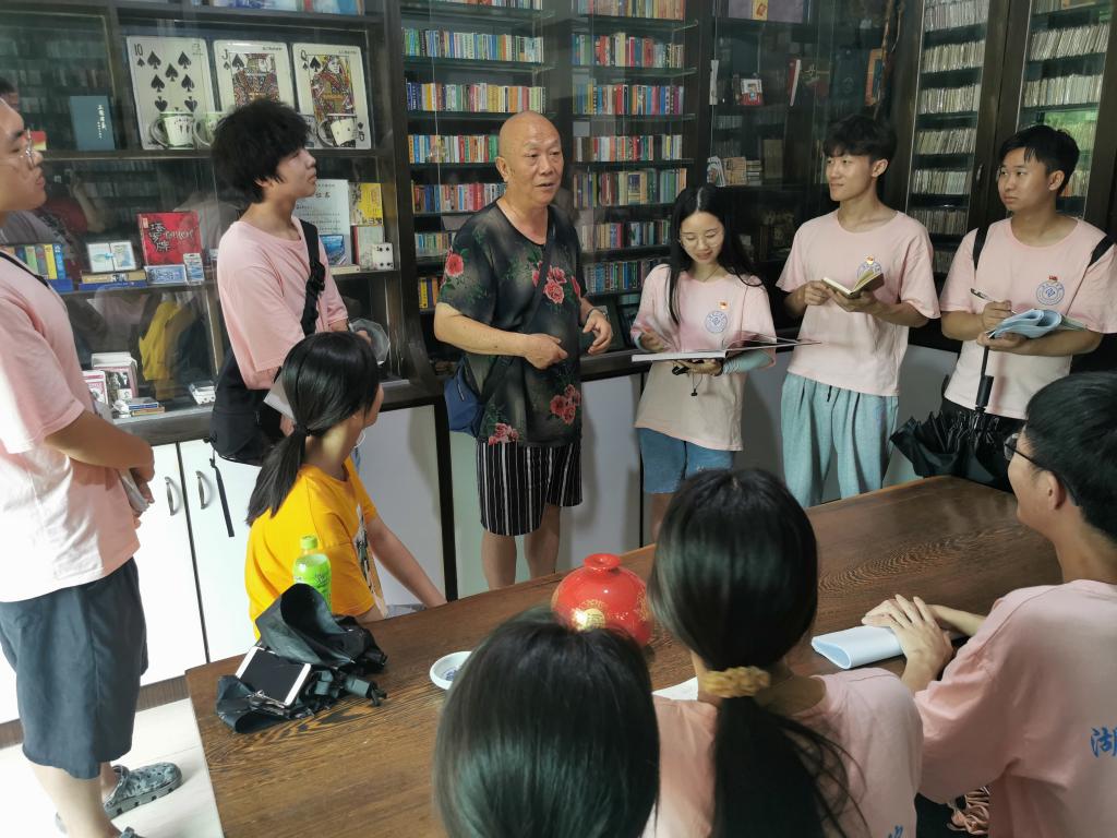 在书屋创办人蒋昭芒先生的带领下,同学们参观了各个馆室,尔后来到二楼进行座谈交流。昭芒先生为同学们声情并茂地介绍了神山村的村史、党史,同时畅谈神山村未来宏图,着手筹备建设以江雪书屋为轴心的乡村小型展览馆群,打造神山文化阵地,带动神山文化旅游发展。最后,昭芒先生启发在座的青年学生要有忠诚、博爱、厚德、包容的江雪精神,努力为乡村振兴作出一些有实际意义的工作,为同学们上了一堂生动的党史教育课。