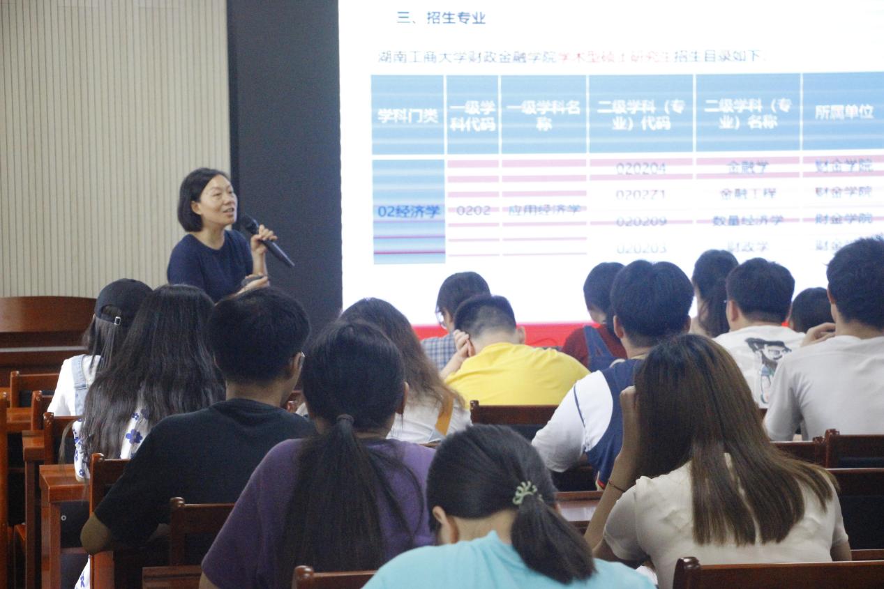 7月2日,湖南工商大学财政金融学院副教授肖劲松来我院进行研究生招生专场宣讲。会议由经济与管理学院副院长朱纪红主持,会计学教研室副主任滕顺平、经贸教研室副主任丁燕、刘秋英副教授及部分辅导员参加。我院120余名同学在经管楼302参加了此次宣讲会。