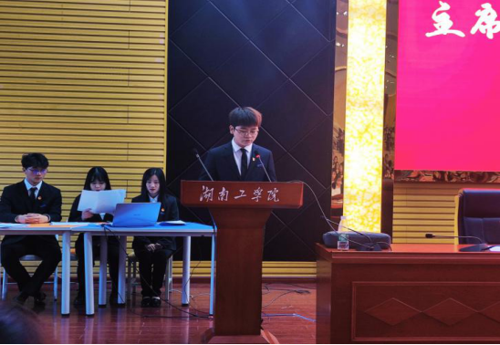 伴随着庄严的国歌,换届大会正式开始。第十二届学生会执行主席邹虎作了任期年度述职,他总结回顾了上年度团委学生会工作,激励新任团委学生会秉承“勤学、务实、园融、卓越”校训,牢记初心、不负众望,继续协助学院建设开展好各项工作。