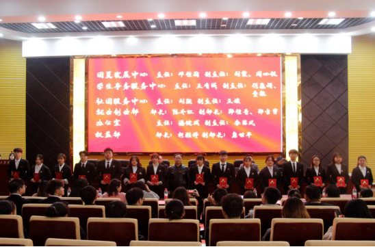 赵晓军宣读了第十三届团委、学生会主席团任命决定,由张忠贤、赵晓军、李闯为他们颁发聘书。