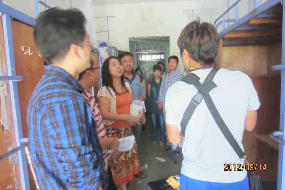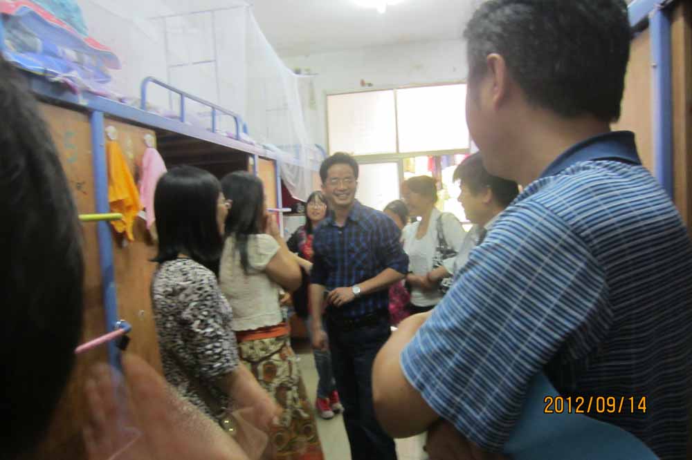 9月14日下午,我院院长杨凤鸣、党总支书记袁勤、党总支副书记黄春喜及大一年级辅导员李前奔、蒋霞晖老师一同走访了百花公寓新生宿舍。