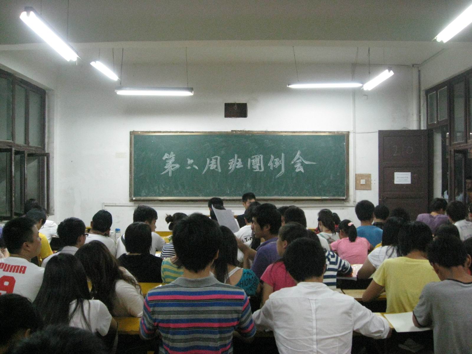 20111011 晚上七点,我系团总支学生会在教学楼210教室组织2010级和2011级各班团召开了班团例会。系团总支书记王雪舟老师、学生会主席团各成员及各部门部长出席了本次会议,会议由团总支副书记李舒主持。