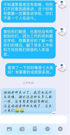 对于来自疫情爆发区域的家庭经济困难学生,学院积极开展心理疏导、情感关怀等措施,密切关注家庭经济困难学生的心理状况,通过微信、QQ、电话等及时了解他们在家学习生活及抗疫防护情况,对学生进行全方位的关爱帮扶,使他们在疫情期间能安心学习、健康成长。