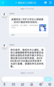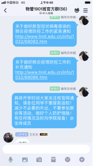 学院通过官方网站、QQ群、微信群等多种媒体平台和宣传途径持续开展新型冠状病毒感染肺炎的防控宣传教育,向师生和学生家长宣传普及疫情防治知识和防控要求,提醒师生尽量不要外出,科学做好防护形成学院重视、家校联动、共同防控的良好氛围积极引导师生文明上网,理性判断信息真伪,做到不恐慌、不信谣、不传谣,凝聚、传递抗击疫情的正能量。学院积极收集疫情防控以来的师生先进事迹和优秀案例,加大对优秀事迹的报道。