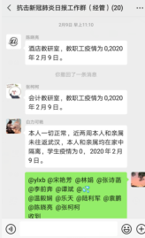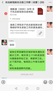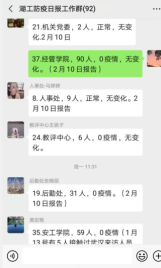 根据学院师生实际情况,学院疫情防控实行分工负责、条块结合、属地管理、联防联控。坚持摸排全院每一个教职员工和学生身体健康状况,利用官网、微信、QQ、易班平台、我在校园等线上平台开展“每日健康打卡”活动,收集每位教职员工和学生每日健康状况、目前所在城市、是否接触过疑似或确诊的新型肺炎患者情况,掌握师生健康的最新动向,严格落实日报告和零报告制度。截至2月11日,全院师生未发现1例确诊病例和疑似病例。
