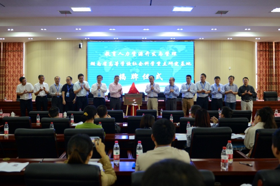 开幕式后,现场专家学者共同参与英国上市公司官网365“教育人力资源开发与管理湖南省高等学校社会科学重点研究基地”揭牌仪式。