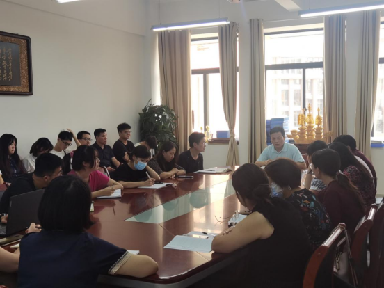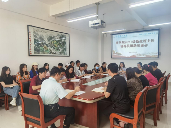 9月13日,商学院在经管楼315召开2021级班主任、辅导员、班级助理工作会议。院党委书记曹文明、党委副书记赵晓军、学工办主任李前奔、2021级班主任、全体辅导员及班级助理参加本次会议。