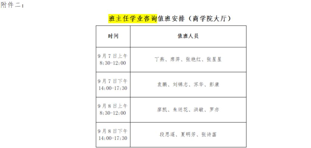1、9月7日6:30至20:00、9月8日6:30至20:00,集中迎新。