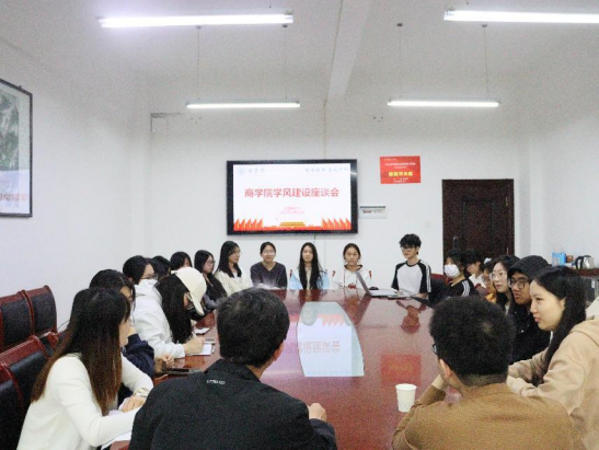 为涵养商学院勤学善思的优良学风,聚焦学生成长需求,共商学风优化路径。4月24日,商学院于经管楼315成功召开学生学风建设座谈会。学院教学与科研办主任文红武,教学秘书欧阳梦翔,辅导员张诗菡、曾子瑶、阳慕蓉及各年级学生代表参与此次会议,会议由曾子瑶主持。