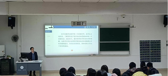 洪敏主任从实习目的、实习要求、实习内容、时间安排等方面做出了详细介绍,并建议学生在毕业实习过程中一定要多听、多看、多思考,努力将理论知识应用于实践工作当中,做到学有所获,学以致用。杨英老师就实习平台的数据采集、实习材料提交等进行了详细安排,并提醒毕业生在实习过程中要加强自身安全,严格遵守实习管理规定和企业规章制度,做到认认真真实习,兢兢业业工作,开开心心生活