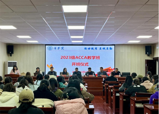 3月4日,商学院在经管楼302报告厅举行2023级ACCA教学班开班仪式。商学院全体领导班子成员,ACCA长沙办公室商务发展主任田艳梅、高顿教育校企合作事业部总监林华壤、会计学教研室主任副主任杨英、事业部经理罗江云、事业部运营经理陈荣、事业部运营主管习亚兰、高顿教育长沙校区学管何丽芬及ACCA全体辅导员、班主任、各年级同学参加本次活动。高顿教育校企合作事业部华南区ACCA项目主管黄惠迁主持会议。