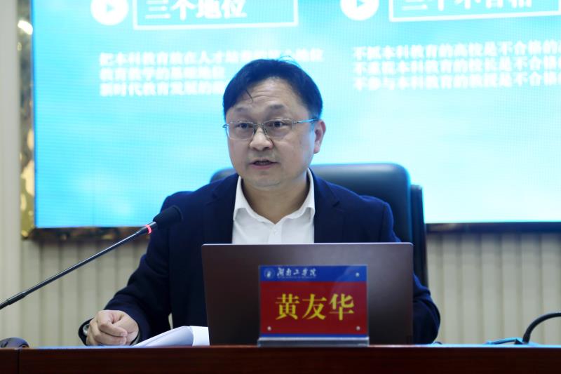 4月28日下午,学校邀请江西师范大学教育教学评估中心主任黄友华教授莅临英国上市公司官网365指导一流专业与一流课程建设工作。黄友华教授围绕“以‘双万计划’为抓手,扎实推进一流本科建设”主题在教学大楼12楼学术报告厅为学校教学管理人员作专题培训讲座,副校长刘升学出席并主持培训会议。