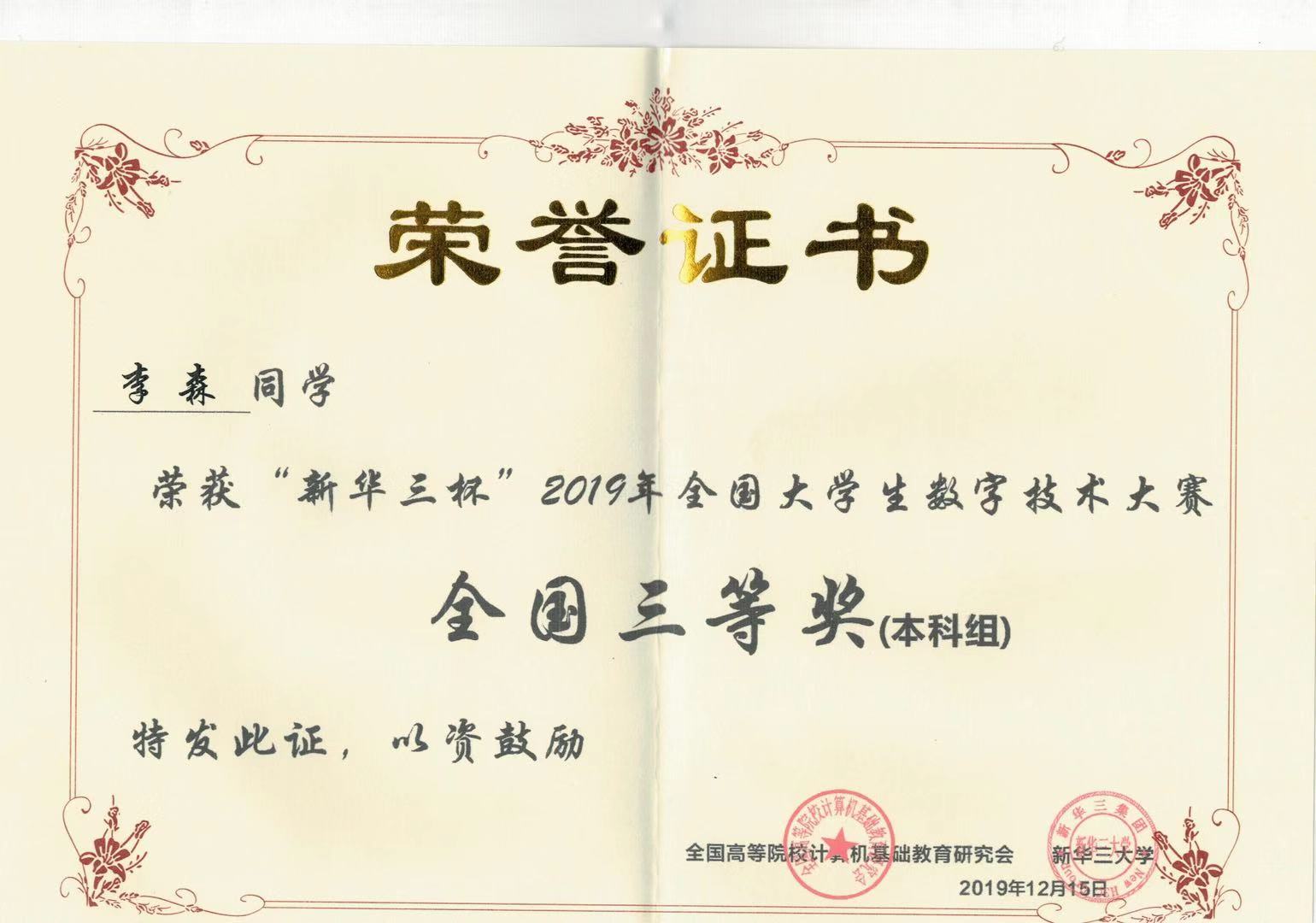 由全国高等院校计算机基础教育研究会和紫光旗下新华三集团联合主办的第九届“新华三杯”全国大学生数字技术大赛圆满闭幕。本届比赛共有来自全国29个省市自治区的520所院校、16500位选手报名参赛。12月15日,总决赛在杭州市举行,英国上市公司官网365计算机学院网络工程专业李森和徐志安同学分别荣获全国三等奖。