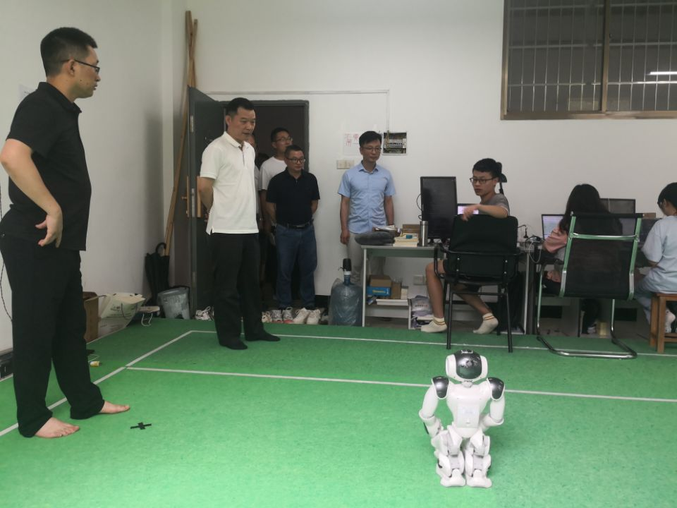 曹校长一行先到达了信息楼大厅,计算机科学与工程学院院长陈敏详细介绍了学院暑期学生留校情况及集训工作。第一站来到了NAO机器人实验室,曹校长饶有兴致的观看了机器人竞赛项目并寄语同学们努力改进算法,对比赛项目做到精益求精;第二站来到了软件作品工作坊及程序设计算法训练开放实验室,他鼓励同学们全身心投入学习,以赛促学,积极提升自己的算法与程序设计能力;第三站走访了五楼南面的物联网创新竞赛开放实验室,他说创新是竞赛的核心竞争力,是科技发展的基础,要敢想、敢试、敢做,争取创作出更多的优秀作品来。