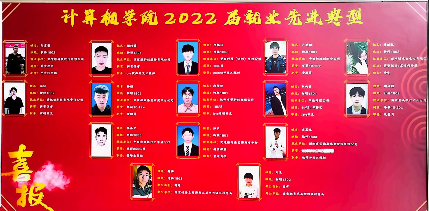 二是学科竞赛屡创佳绩。近5年来,共在省级以上各类竞赛中获奖265项,其中国家级奖项34项。2020年获华为ICT大赛全球二等奖,在蓝桥杯程序设计竞赛中获国赛一等奖3项;2021年在湖南省物联网创新设计竞赛中荣获省级一等奖,在中国高校计算机大赛-团体程序设计天梯赛获湖南省高校总榜第7名、全国第149名,获中国大学生计算机设计大赛全国二等奖;2022年获ACM/ICPC亚洲区域赛铜奖1项,获湖南省数字媒体创意设计大赛和物联网竞赛一等奖2项。