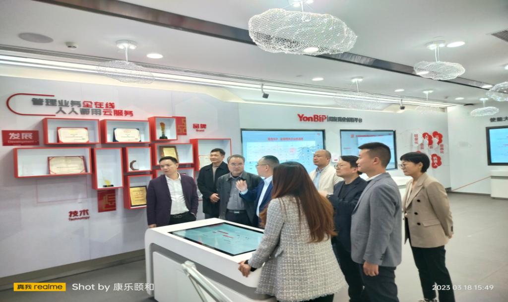 下午,何建雄一行走访了用友北京产业园,新道科技副总裁张杰、助理总裁何胜利、湖南校企合作经理肖仁忠等进行接待,参观了用友数智企业体验馆,观摩了用友在智能财务、智慧营销、数智人力、工业互联网、教育等领域提供的数智化应用场景和模式,了解了大数据、人工智能、区块链等新技术发展对各领域人才的新挑战和新要求,实地感受了行业企业以数智化转型赋能教育的实践探索。双方围绕数智人才培养解决方案和产教融合发展等议题进行了研讨和交流,针对产教融合合作模式进行了深入讨论,均表达了合作共赢,共谋发展的意愿。