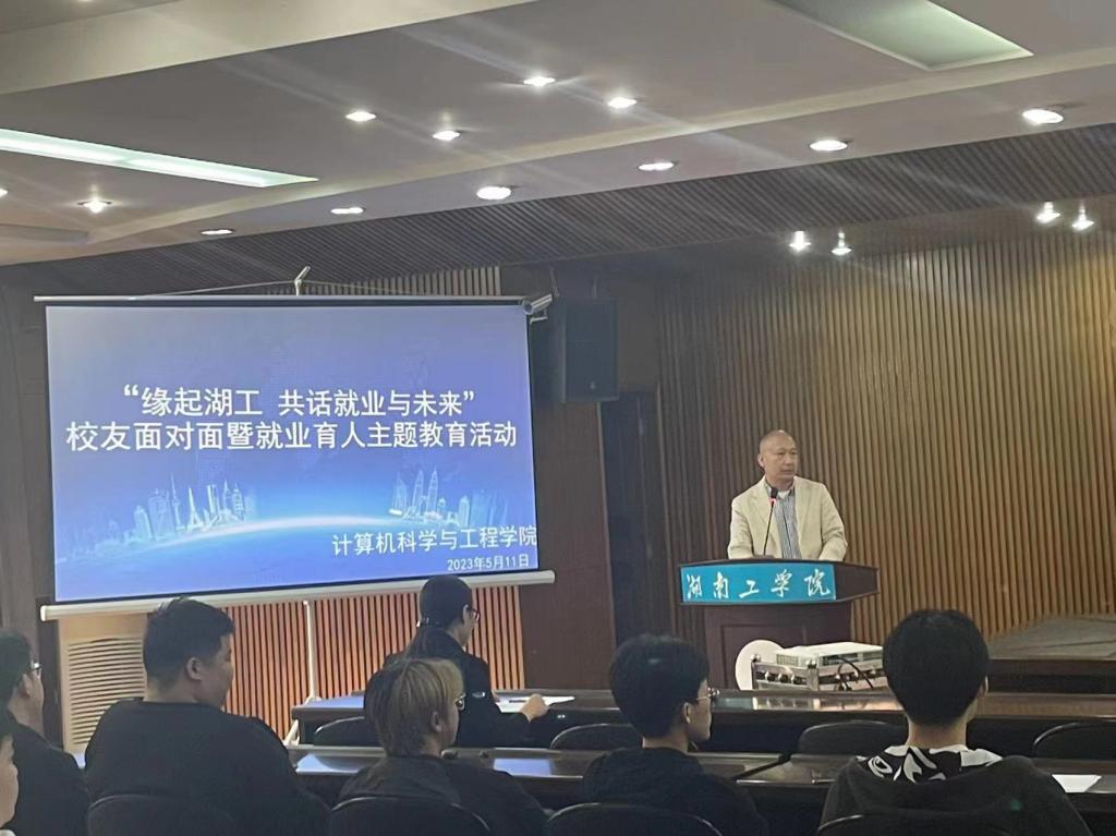 为充分发挥优秀校友榜样激励作用,给在校学生提供与优秀校友“零距离”学习交流的机会,促进学生更加充分和更高质量就业。5月11日下午,计算机科学与工程学院“缘起湖工,共话就业与未来”校友面对面活动在信息楼2216大会议室圆满举行。活动邀请了计算机学院优秀校友、杭州飞致云信息科技有限公司两湖总监杨宇亭,湖南永泰智业软件有限公司总经理胡伟,仁智云(广州)大数据科技有限公司代表林菁、李颖,2023届毕业生代表肖怀钰。计算机学院党委书记黎昂、院长陈敏、副书记李玉秀及辅导员、在校学生代表参加本次活动,会议由李玉秀主持。