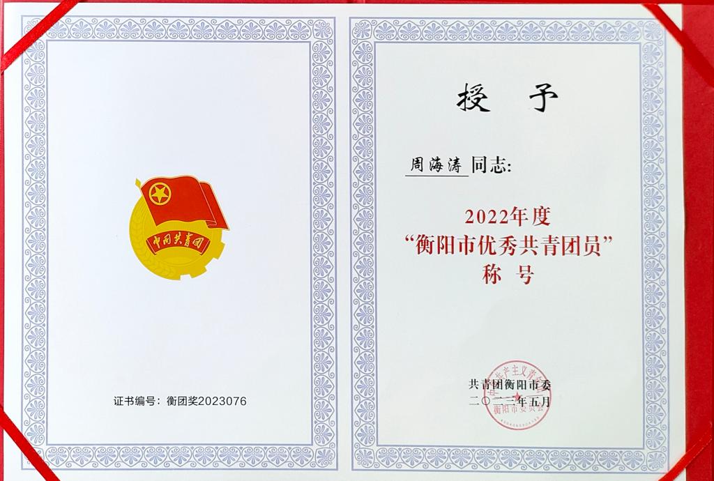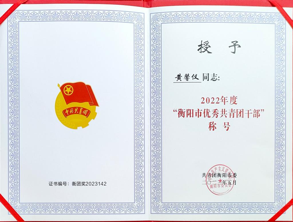 近日,经全市各级团组织层层选拔推荐,团市委基层组织建设部严格审核并报请团市委书记办公会议研究,确定了“衡阳市五四红旗团委(团工委) ”30个、“衡阳市五四红旗团支部(团总支)”40个、“衡阳市优秀共青团员”105人、“衡阳市优秀共青团干部”45人作为拟评选对象。我院老师黄馨仪被评为2022年度衡阳市“优秀共青团干部”,学生周海涛被评为2022年度衡阳市“优秀共青团员”。