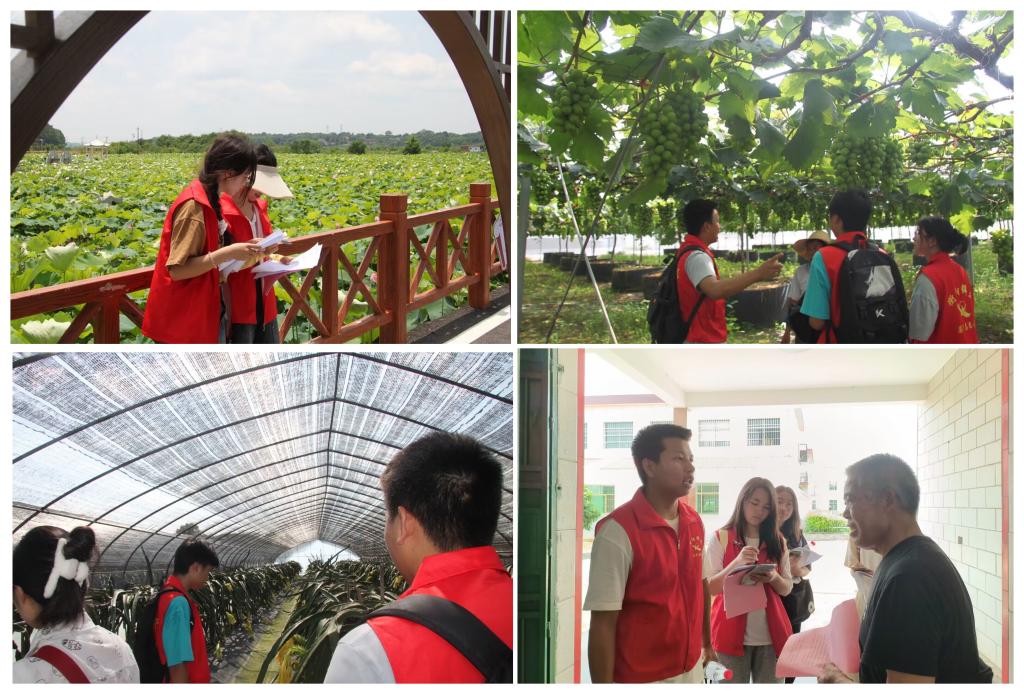 实践团队走进农业大棚深处与田间地头,调研乡情,学习农业知识,体验现代化农业管理模式。在参观怡海村的荷花基地时,领略了基地独特的水域生态系统,了解了基地在荷花种植方面采用了先进种植技巧与销售模式。在走访果蔬种植大棚时,亲手采摘感受到了劳作的辛苦与收获的幸福。此外,还通过种植大棚智能管控系统,全方位了解大棚种植的智慧化管理运作。结合专业特色,实践队向基地工作人员提出了新媒体营销、网站管理等建议。随后,队员以问卷调查的形式开展了以“关注农村产业发展,倾听农民真实心声”为宗旨的深入调研,通过与农民的深入交流,了解到他们对农村产业发展的渴望和期望。