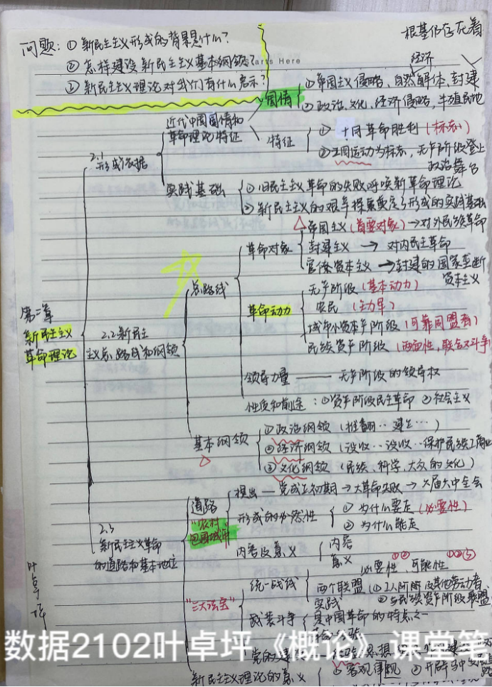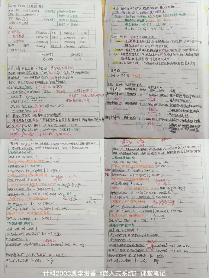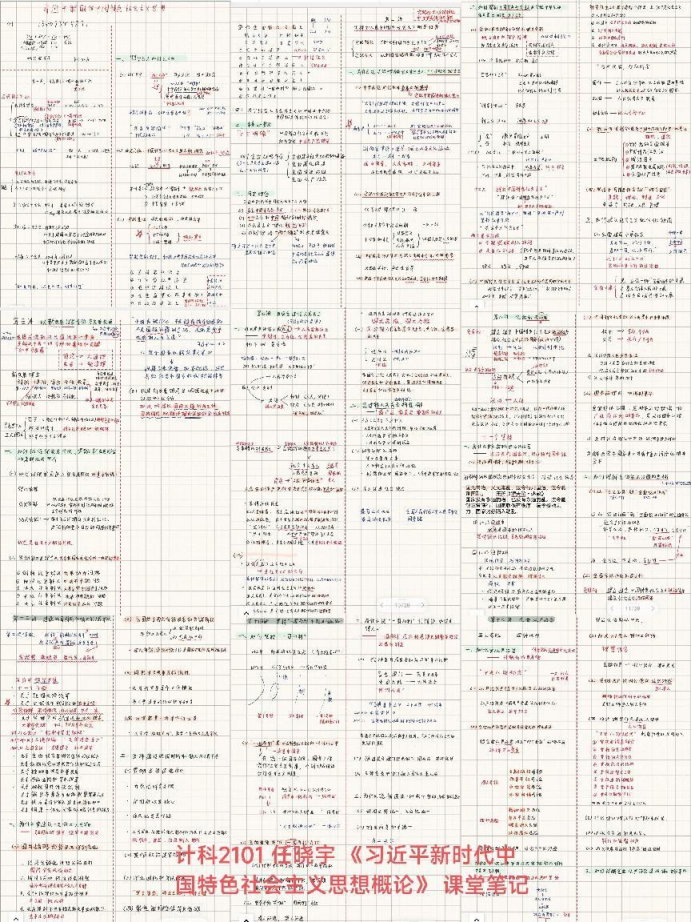 每一份课堂笔记都细致的表达着老师的讲课内容,同时也展现着湖工学子对知识的渴望,对学习孜孜不倦的热爱精神。笔记内容涉及嵌入式系统、C++面向对象程序设计、高等数学、大学物理、习近平新时代中国特色社会主义思想概论等多种课程科目。每一位同学的笔记各不相同:有热衷于用彩色笔来进行笔记记录,以便重点突出的;有乐于制作思维导图,以便梳理知识网络的;有利用便利贴突出总结知识点的,可谓“八仙过海,各显神通”。