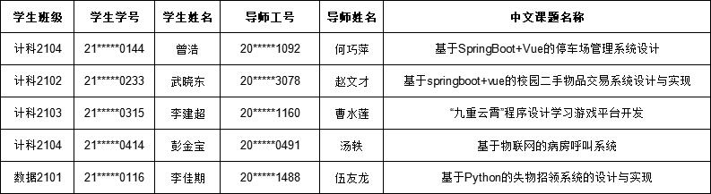 下述5位同学答辩批次改为第二批次,答辩时间将延期,最终答辩时间将根据初稿提交及修改进度另行通知。