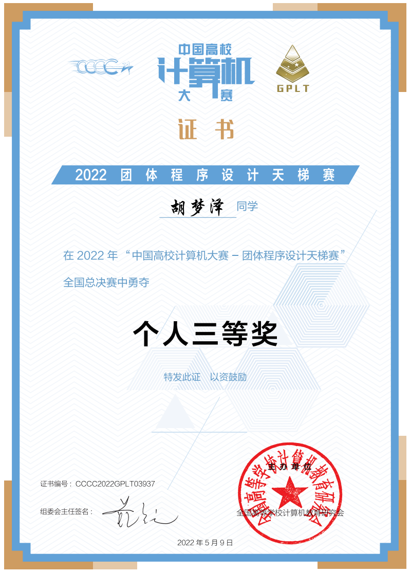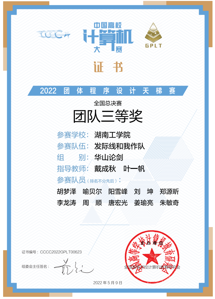 英国上市公司官网365在2022年“中国高校计算机大赛-团体程序设计天梯赛”中获得全国三等奖