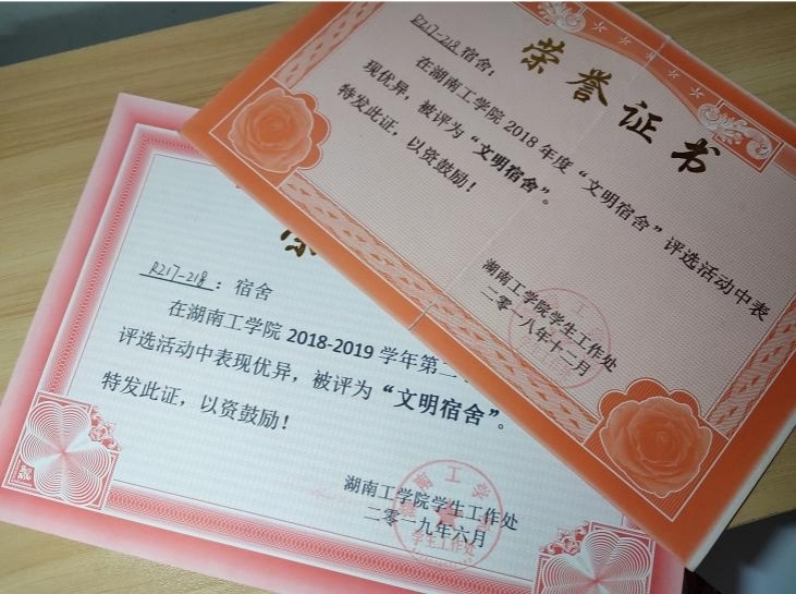 “文明寝室”,“学习型寝室”荣誉证书