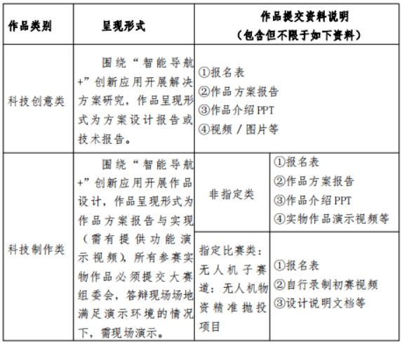 1.科技创意类参赛作品要求基于北斗卫星导航技术开展 “智能导航+”创新应用性方案研究,作品呈现形式为作品方案报告。