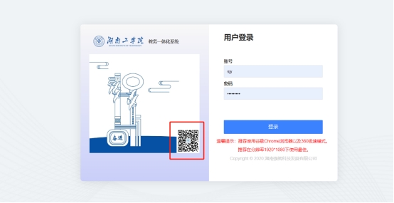 方式2:电脑登陆教务系统首页https://jwxt.hnit.edu.cn,然后扫码图中二维码进入移动端。