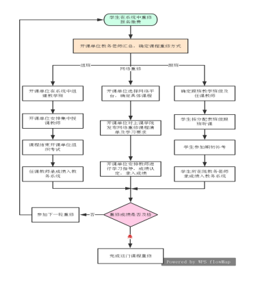 (1)开课单位根据重修学生名单,确定课程重修方式(单独组班、跟班或网络重修)。