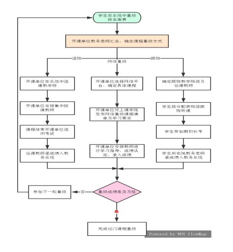 (1)开课单位根据重修学生名单,确定课程重修方式(单独组班、跟班或网络重修)。