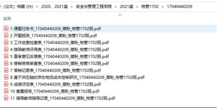 2.所有材料按照以上清单目录排序编号,以学生学号为文件名建立文件夹存放。