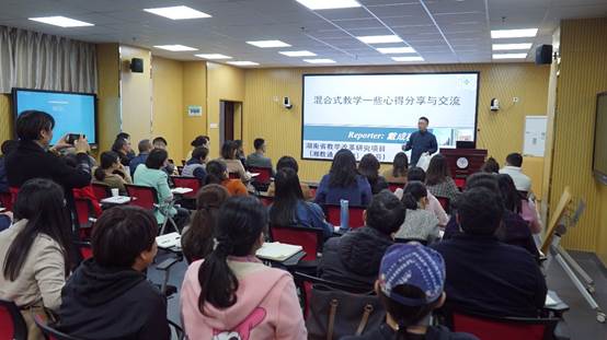 李理教授从自己开展混合式教学的实际出发,结合自己建设省级精品在线开放课程的经验,从技术催生课堂变迁、学习者能力提升的关注焦点、课程覆盖面、思政要素选择与融入、面向过程的精细化考核等方面作了精彩汇报,并就如何整合资源、严格考核、筛选思政元素等给出了中肯的建议。戴成秋老师从一份调查问卷开始,切入主题,以自己实施混合式教学的实际操作案例为引,串联了课程教学目标、交互式设计、碎片化学习以及团队协作等要点,最后以课堂小游戏的方式总结,加深了对于交流内容的理解。