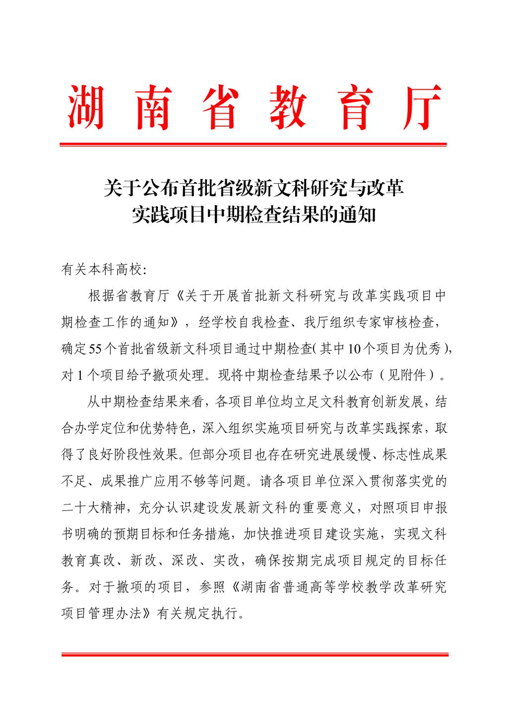 关于公布首批省级新文科研究与改革实践项目中期检查结果的通知(英国上市公司官网365)