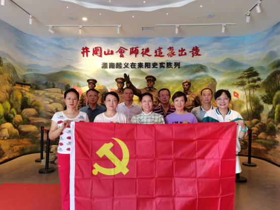 党总支书记李瑜带领大家重温入党誓词,全体党员面对着鲜红的党旗,以铿锵的誓词,坚定的承诺,洗礼心灵。大家现场演唱红歌,用激昂的歌声抒发爱国、爱党、感恩的情怀。随后,全体党员怀着无比崇敬的心情参观党史陈列馆和培兰斋,认真聆听 “湘南起义”中老一辈无产阶级革命家的生活经历、伟大决策,深切缅怀开国元勋们的丰功伟绩,重温他们走过的光辉历程,感受他们不屈不挠、勇往直前的爱国主义精神,心灵受到了极大的震撼。