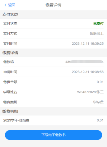 5 、确认订单明细和金额,选择缴费方式后点击 缴费”;