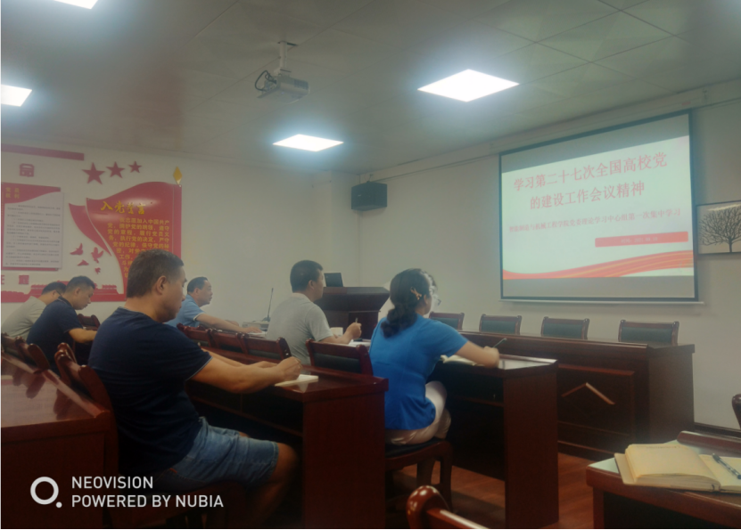 会上,党委副书记王本强带领学习了王沪宁第二十七次全国高校党的建设工作会议讲话精神:要深入学习贯彻习近平总书记“七一”重要讲话精神和关于加强高校党建工作的重要论述,贯彻落实《中国共产党普通高等学校基层组织工作条例》,紧扣立德树人根本任务,扎实推进高校党的建设和思想政治工作,努力培养德智体美劳全面发展的社会主义建设者和接班人。随后,学习了总书记“七一”重要讲话精神的十个关键词内容和习近平关于高校党建工作的重要论述内容。