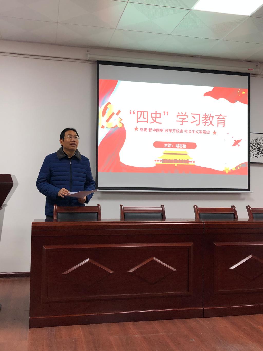 党课上,肖志信副院长生动阐述了党史、新中国史、改革开放史、社会主义发展史,并强调中国共产党是引领世界社会主义发展的重要政治力量,督促全体党员学好“四史”、牢记初心使命。