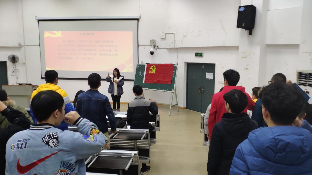 支部严格按照党员发展程序,经过党支部严格考察和培养,黄杨等8名入党积极分子被列为发展对象,8位同志依次上台宣读入党志愿书,随后培养人分别介绍发展对象的现实表现,再由各党员投票表决,一致通过。接下来大会讨论了宁奕等10名预备党员转正的问题,各预备党员分别宣读自己的转正申请,详细汇报了自己在预备期间的表现,表达了入党的志愿和决心,培养人也依次对他们在预备党员期间学习、生活和工作上的进步和不足作了认真总结,随后由在座的党员进行举手表决,一致通过。最后由党支部书记张艳霞宣布了支部决议,对党支部新成员的加入表示了热烈的祝贺,希望新党员要保持良好的风貌,继续发扬党员的先锋模范作用,并带领全体党员面向党旗庄严宣读入党誓词。