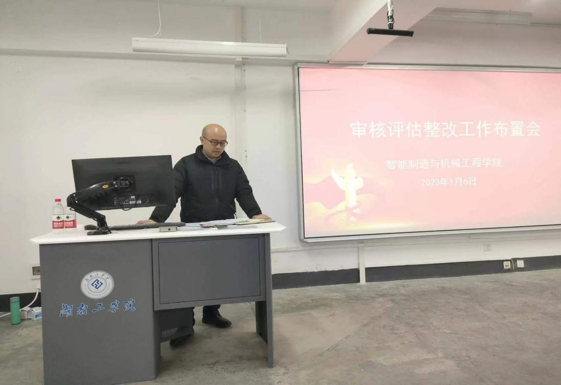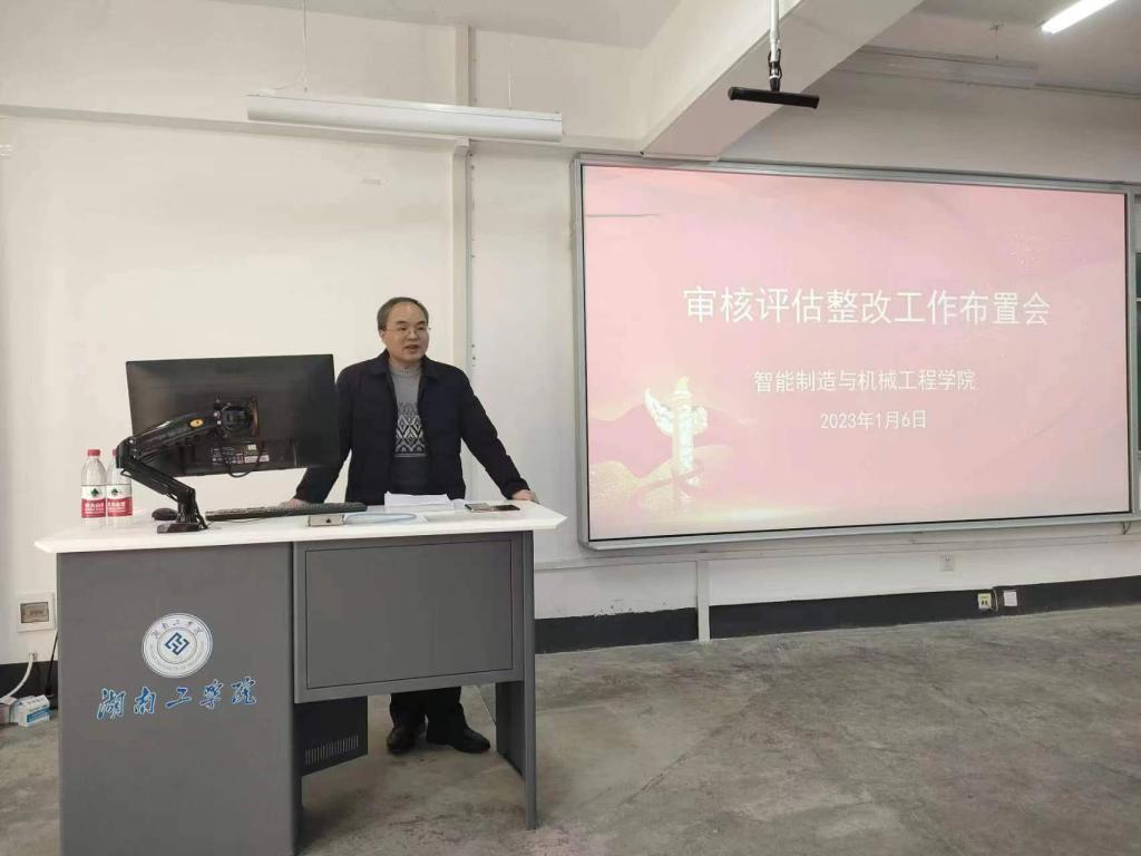1月6日下午,智能制造与机械工程学院全体教职工在4210召开本科教育教学审核评估整改工作布置会,校党委委员、副校长何建雄出席会议并讲话,会议由党委书记范志明主持。