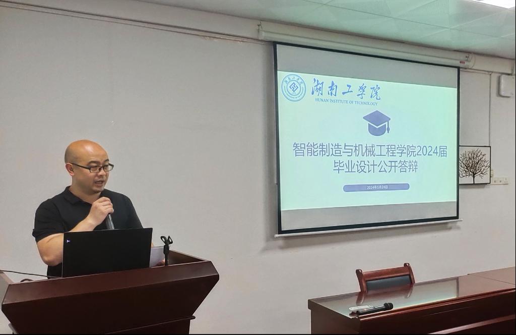 5月24日,智能制造与机械工程学院在4209B举行了2024届本科生毕业设计公开答辩。学院答辩委员会老师、2024届毕业生学生代表参加答辩会,大一到大四年级学生代表近200人旁听观摩答辩。学院机械设计及其自动化、自动化、材料成型及控制工程、机器人工程、机器人工程、汽车服务工程、智能制造工程7个专业共有13件优秀作品参加公开答辩。答辩活动由学院副院长王小虎主持。