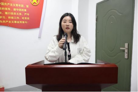 团委书记王雪舟老师发表讲话。她向新团员们表示热烈的祝贺,并寄予了殷切期望,希望他们能够树立远大理想,立下宏伟志向;广泛学习知识,锻炼实践能力;培养高尚道德,塑造健全人格;以青春的活力,引领创新的潮流。
