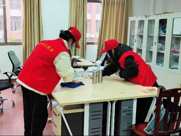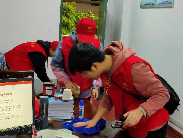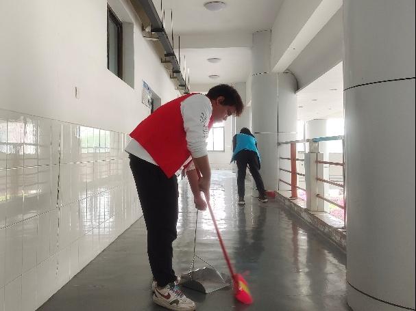 志愿者们身穿红马甲,手拿扫把和抹布,早早在机械楼大厅集合。活动中,大家有序分工、团结协作,认真清扫教室、走廊垃圾,整理讲台,给广大师生带来了干净舒适的学习工作环境。