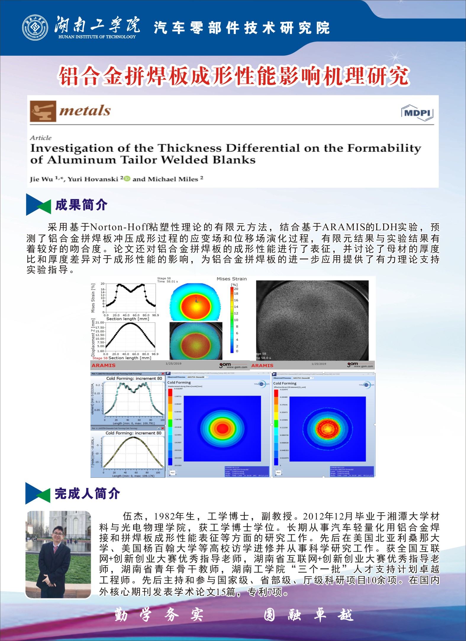 伍杰---铝合金拼焊板成形性能影响机理研究