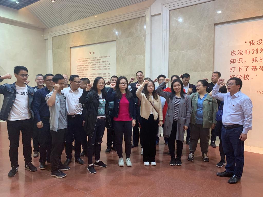 全体党员怀着无比崇敬的心情参观了纪念馆,详细了解了湖南第一师范学院的历史沿革、学校情况,中共一大代表毛泽东、何叔衡、李达,中共七大书记处书记任弼时,中华民国开国元勋黄兴等曾就读于此。毛泽东在学校求学、工作八个春秋,并在此开展了中国共产党的创建等一系列革命活动。全体教师对毛泽东等老一辈无产阶级坚定信仰、团结奋斗的精神感怀至深。随后党委书记曹毅带领大家重温入党誓词。