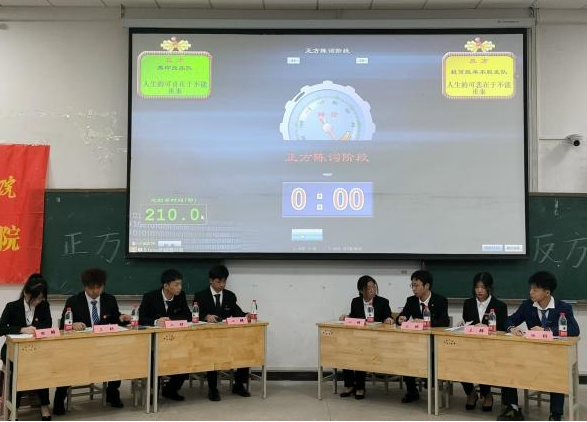 辩论赛在刘易华副书记热情洋溢的致辞中拉开了帷幕。正方“无印良品队”与反方“脱贫脱单不脱发队”就辩题“人的生命不能重来是可喜还是可悲”展开辩论。比赛现场,双方辩手措辞准确,思维敏捷,抓住对方的漏洞巧妙反驳,无论是在自由辩论还是攻辩环节,都巧妙的回答了对手的问题,最终正方以良好的现场应变能力成功夺冠,其中正方四辩,获得本次比赛最佳辩手称号。赛后,樊子元为获胜队伍和辩手进行颁奖,并在同学们热烈的掌声中圆满结束。