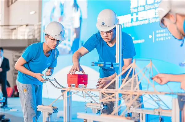 本次竞赛是由湖南省住建厅、省教育厅联合主办,湖南建设人力资源设计协会、长沙理工大学共同承办,四川路桥建设集团股份有限公司冠名赞助。本届赛题以承受竖向静力和局部转移荷载的桥梁结构为对象,要求选手在比赛现场设计制作一座竹质结构桥梁,承受分散作用的竖向集中静力荷载以及二级局部转移荷载。本次比赛首次采用国赛赛题,竞赛难度较大,考察学生对竹质材料的合理利用及力学分析能力,在确保模型安全的前提下,需要对模型的弯曲和扭转变形进行控制。